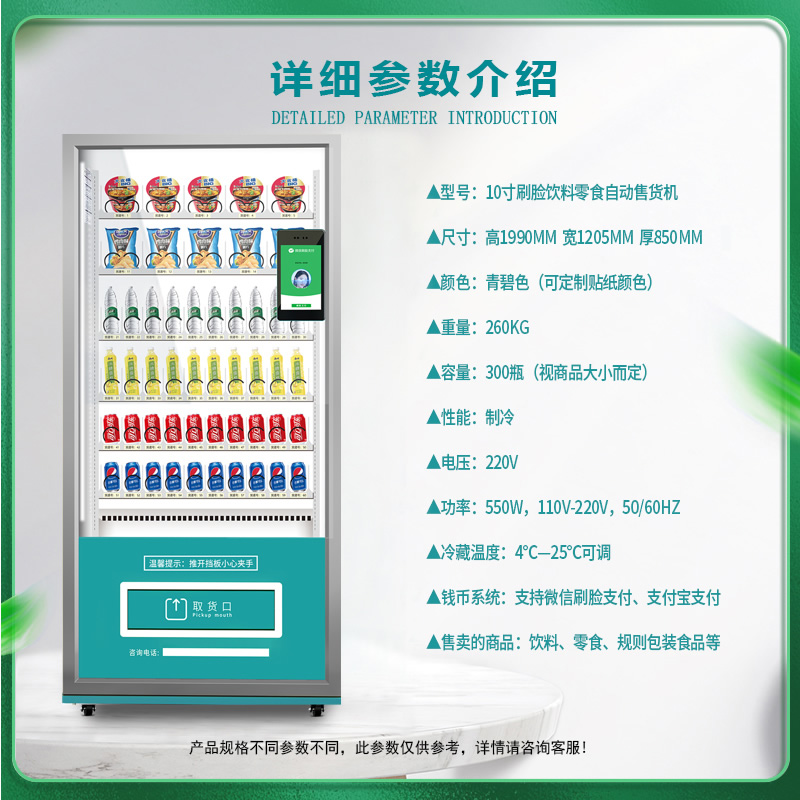 產品名稱:10寸刷臉飲料零食自動售貨機雙柜