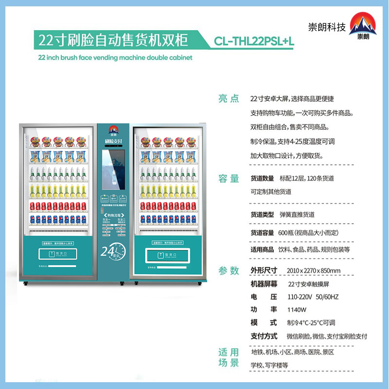 產品名稱:22寸觸摸屏飲料零食雙柜自動售貨機